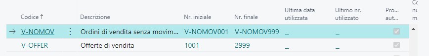 In questo modo, quando si crea un nuovo ordine di vendita scegliendo ‘NOMOVCONT’ come modello, verrà proposta automaticamente la numerazione ‘V-NOMOV’; gli ordini di vendita saranno così filtrabili anche per il nr. del documento.
