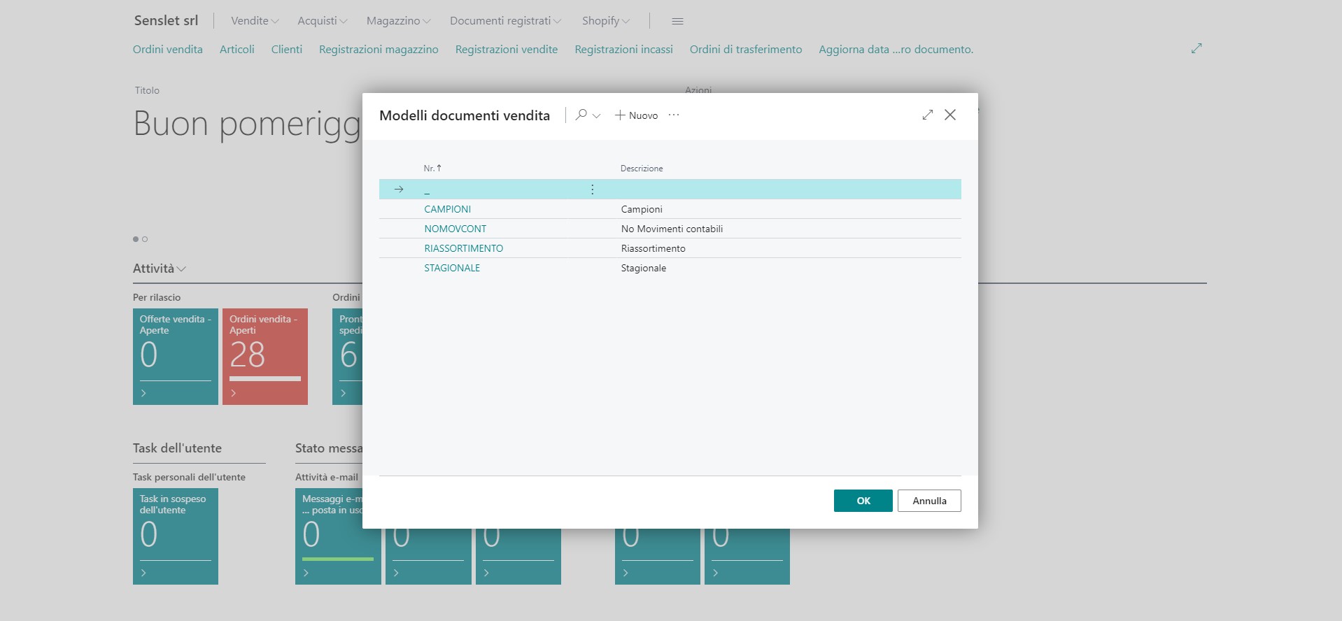 Come anticipato nel capitolo ‘setup’, nell’aprire la lista degli ordini di vendita compare una finestra per la scelta tra i modelli presenti per i documenti di vendita.